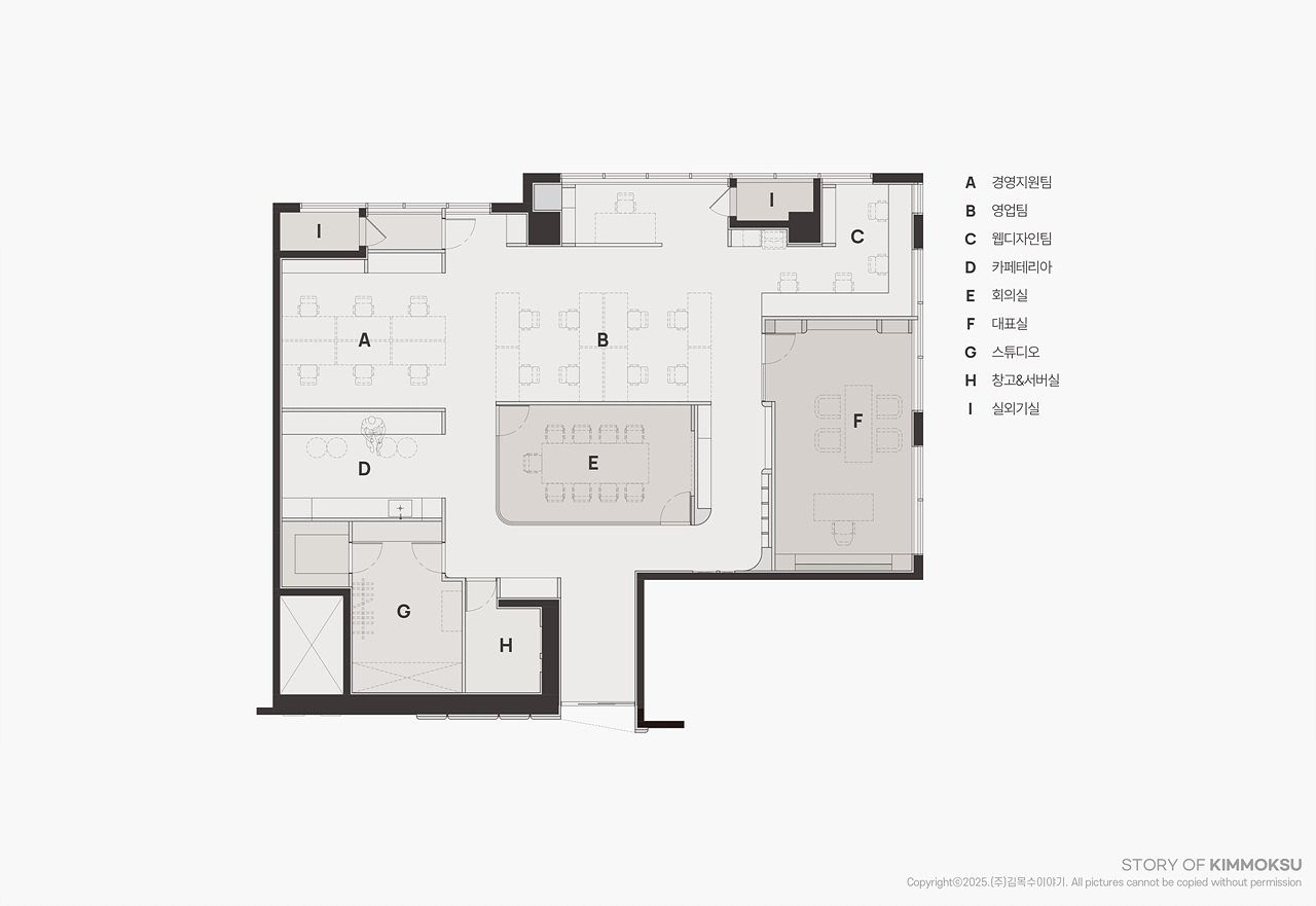 구 성 업무공간, 회의실, 카페테리아, 스튜디오,