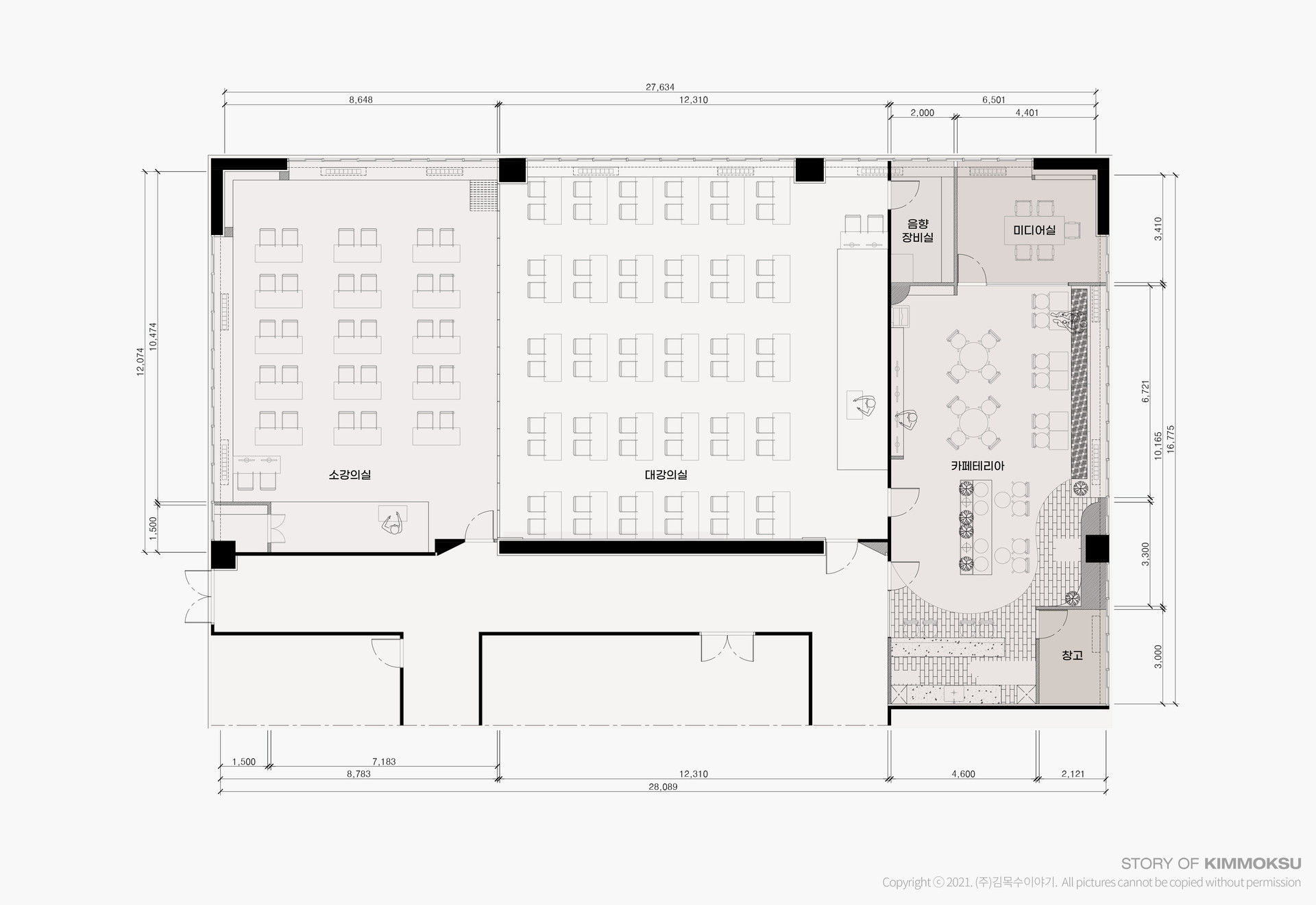 구 성 강의실, 카페테리아, 미디어실, 음향장비실, 창고