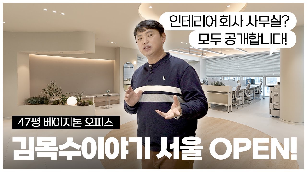 <김목수이야기>의 서울 사무실은 두 가지 역할을 합니다. 첫 번째는 김목수이야기 직원들의 업무 스타일과 효율에 초점을 맞춘 디자인으로, 설계팀에게는 쾌적한 업무환경을, 현장팀에게는 안락한 휴식 공간을 제공합니다. 두 번째는 고객님들께 '모델하우스'역할을 해줍니다. 김목수이야기 디자인 스타일과 철학을 함축적으로 담은 사무실을 사진이 아닌 고객님 눈으로 직접 볼 수 있도록 하였으며, 디테일한 마감이나 현장감을 김목수이야기 사무실을 통해 확인할 수 있습니다. 깨끗한 아이보리톤을 베이스로 곡선 라인을 전면에 내세워 부드럽고 안정감 있는 공간을 연출하였습니다.