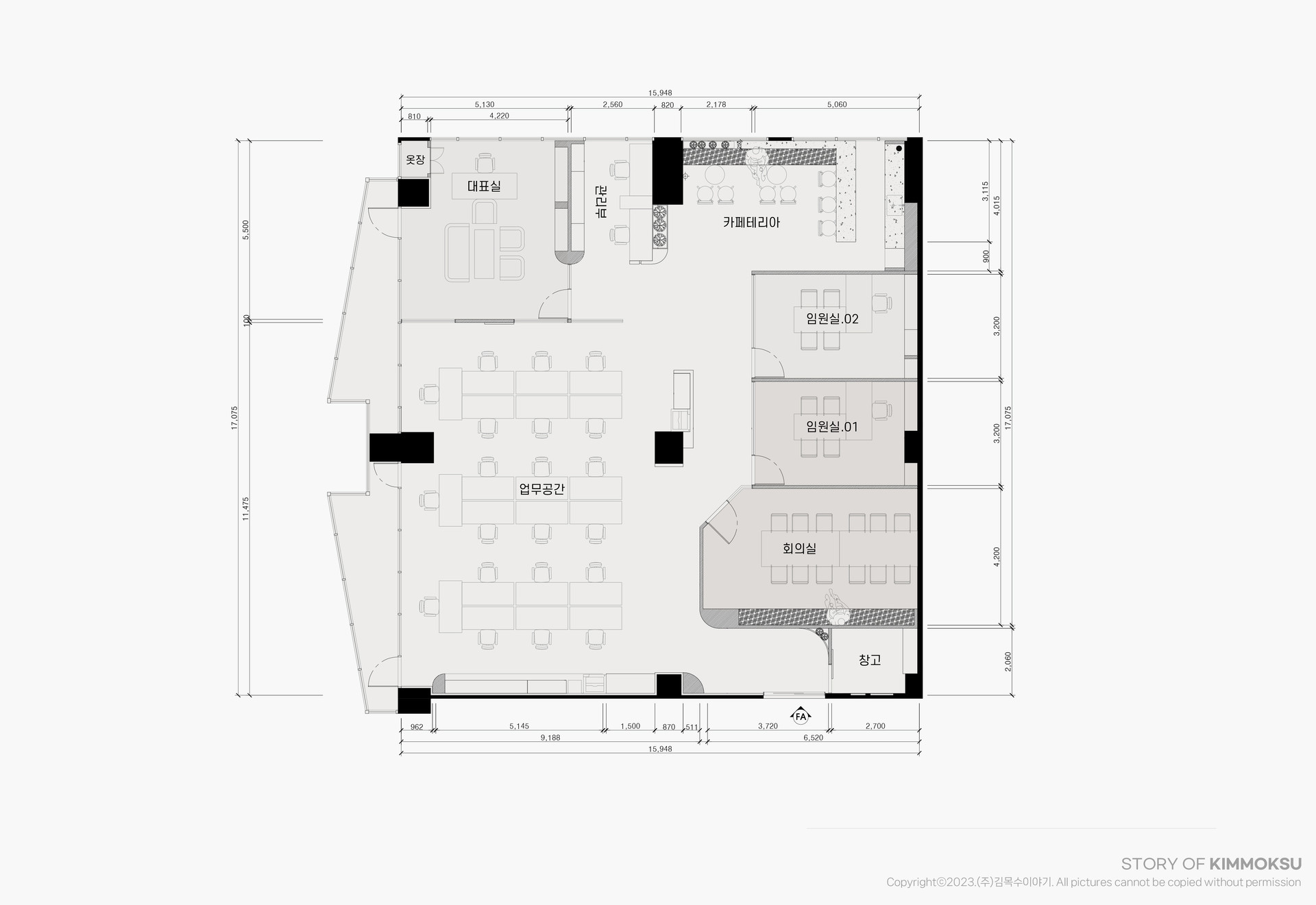 구 성 업무공간, 대표실, 탕비공간, 창고, 회의실, 응접실
