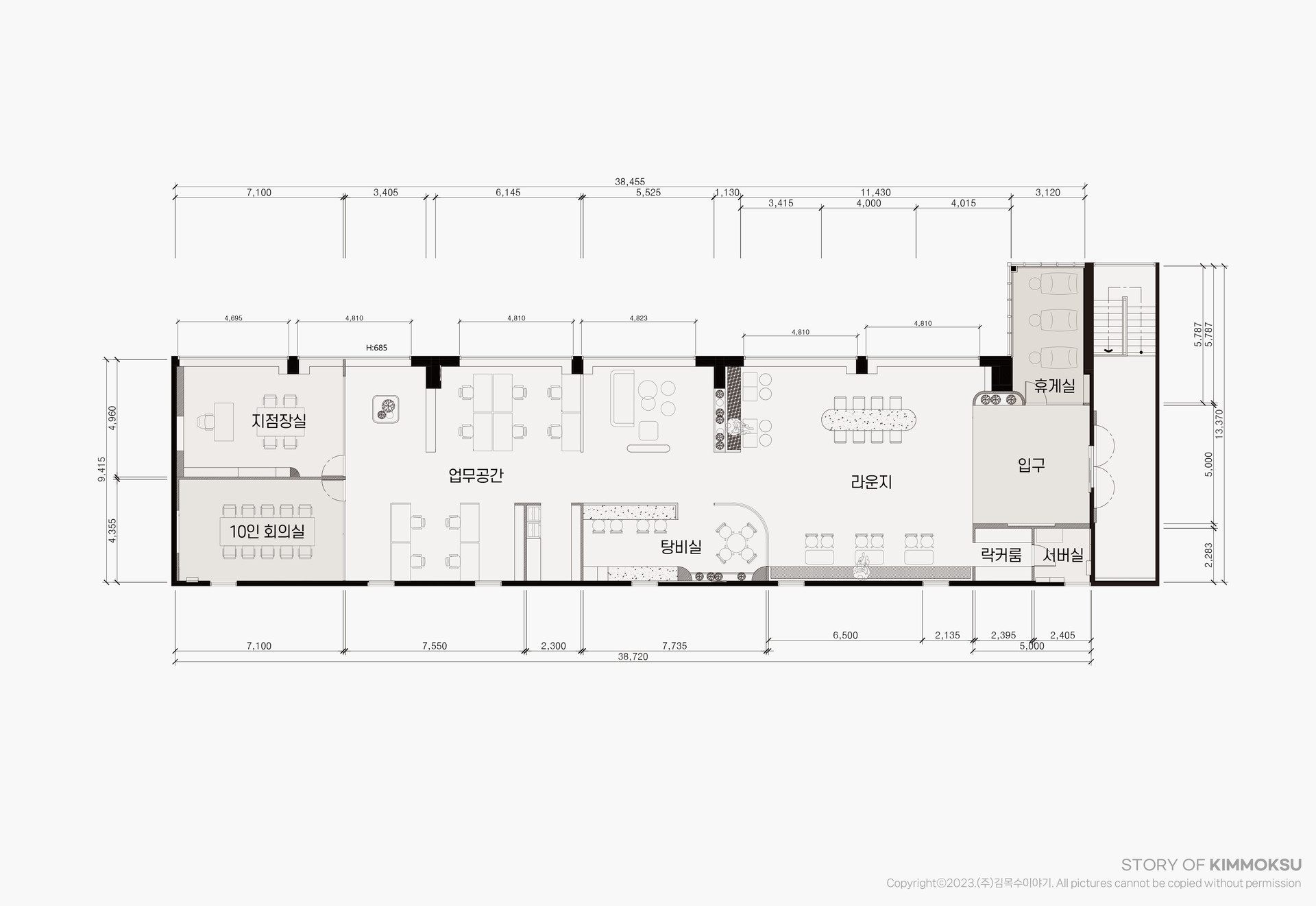 구 성 업무공간, 라운지, 지점장실, 탕비실, 10인 회의실,