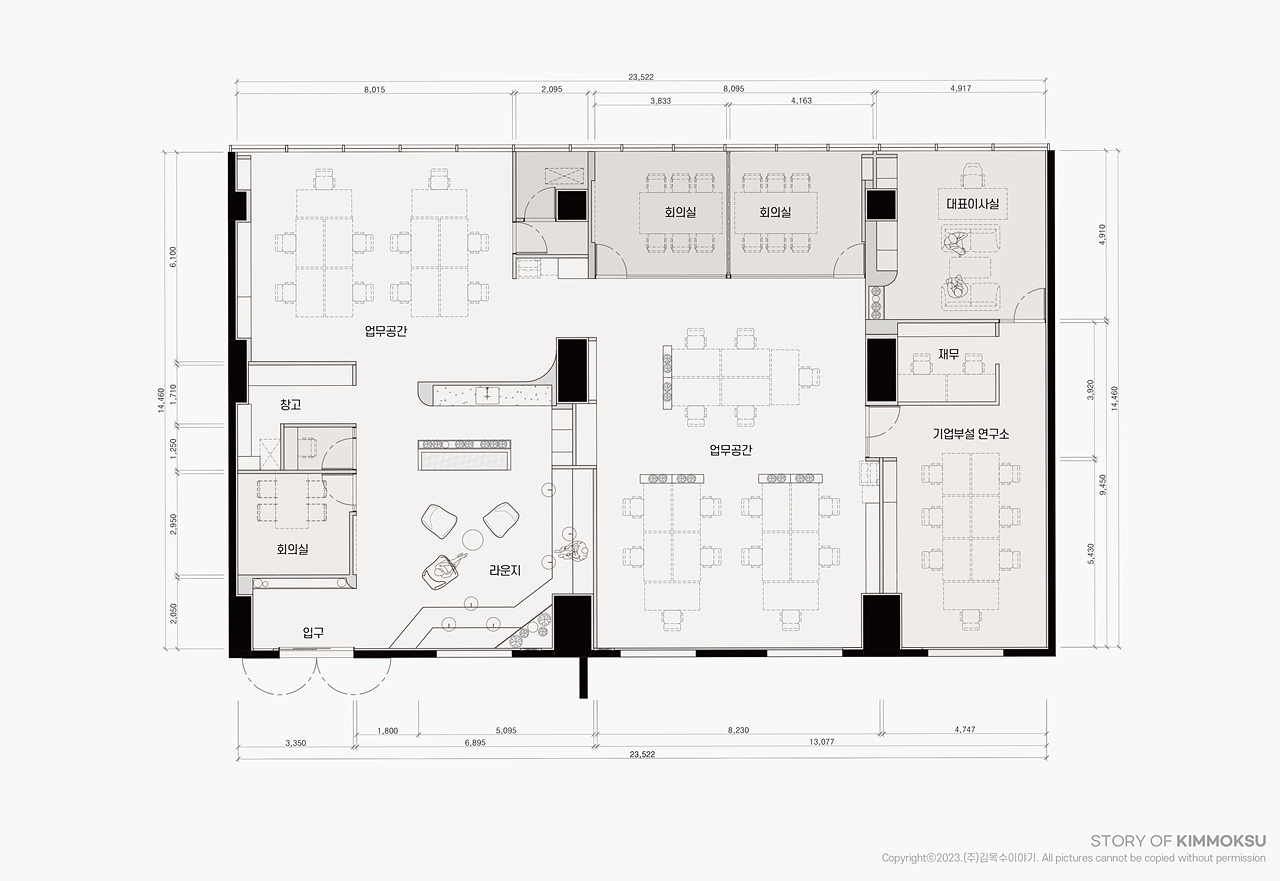 구 성 라운지, 업무공간, 회의실, 솔로부스, 대표이사실,