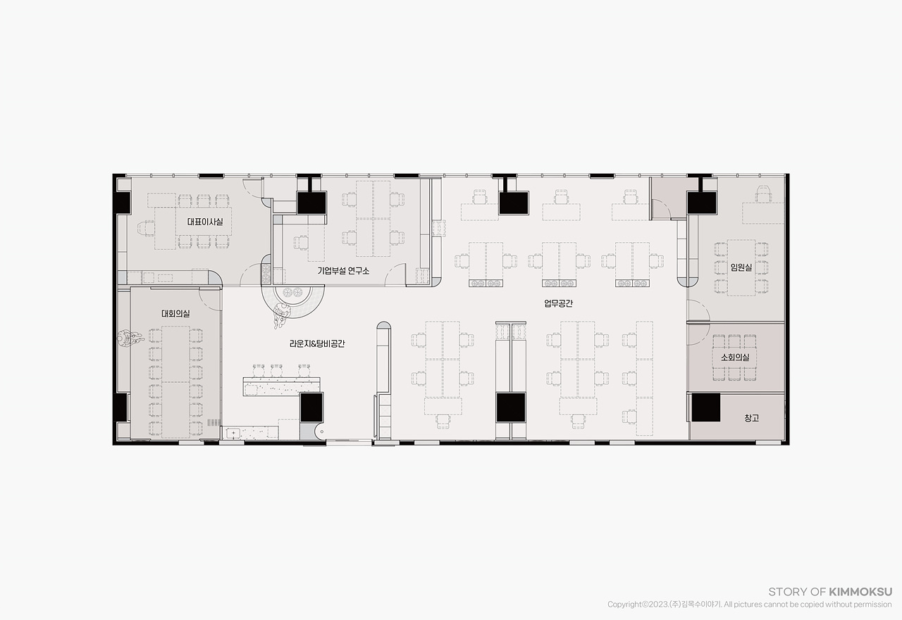 구 성 업무공간, 대표이사실, 기업부설연구소, 대회의실,