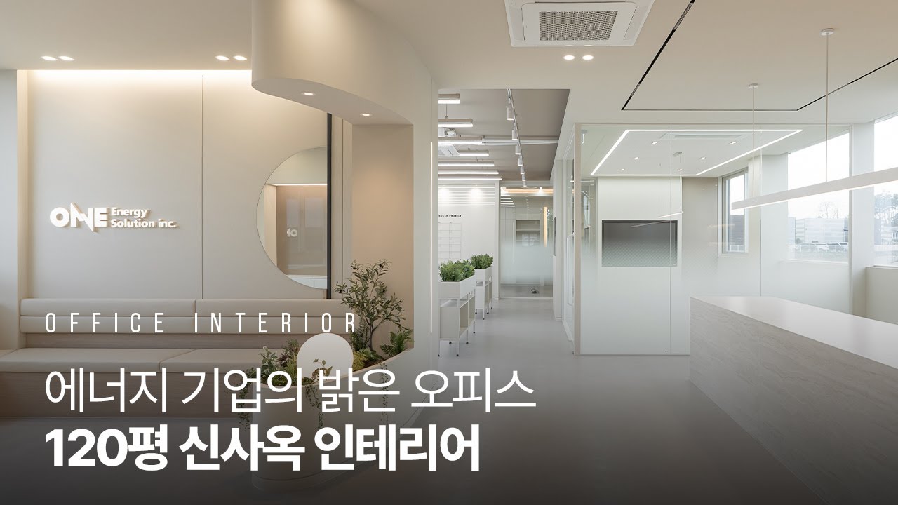 에너지 솔루션 전문 기업 <원에너지솔루션>의 새로운 사무실은 단조로웠던 기존 공간에서 벗어나, 구성원 모두가 편안하고 따뜻한 분위기에서 일할 수 있도록 완성된 공간입니다. 김목수이야기는 이번 프로젝트에서 실용성과 감성을 균형 있게 담아내며 1,2층으로 나누어진 120평 규모의 사무실이 자연스럽게 연결되도록 설계하였습니다. 계단으로 이어지는 두 층은 외부 파사드부터 내부 조명 연출까지 곡선을 활용해 유연한 리듬감을 살렸습니다. 직원과 손님 모두를 위한 카페테리아 라운지는 플랜테리어 요소를 더해 휴식과 자연의 감각을 느낄 수 있도록 했으며, 각종 회의나 비공식 미팅을 위한 다목적 공간으로도 활용됩니다. 회의실은 공간 효율성과 빠른 동선을 고려해 기능적으로 배치되었고, 업무공간은 시야가 열려 있는 개방형 구조로 구성해 일상적인 협업과 유연한 업무 방식에 최적화했습니다. 전체적인 디자인 콘셉트는 베이지 계열을 중심으로 구성해 시각적인 따뜻함과 공간의 부드러움을 강조했습니다. 밝은 톤의 컬러는 천장고(3150mm)의 장점을 살려 공간감을 극대화하며, 구성원들이 편안하게 집중할 수 있는 환경을 조성합니다.