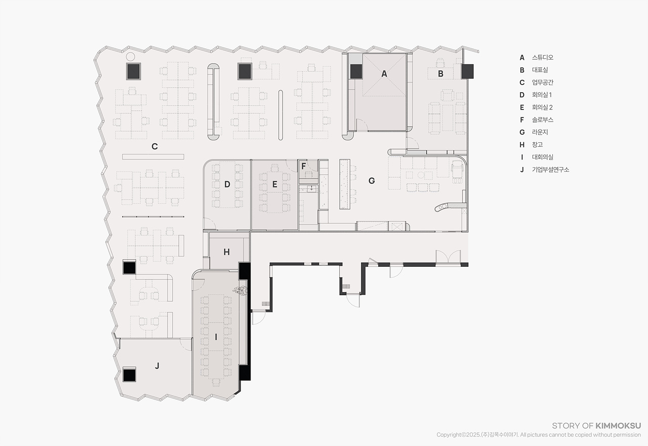 구 성 라운지, 업무공간, 회의실, 대표실, 기업부설연구소,